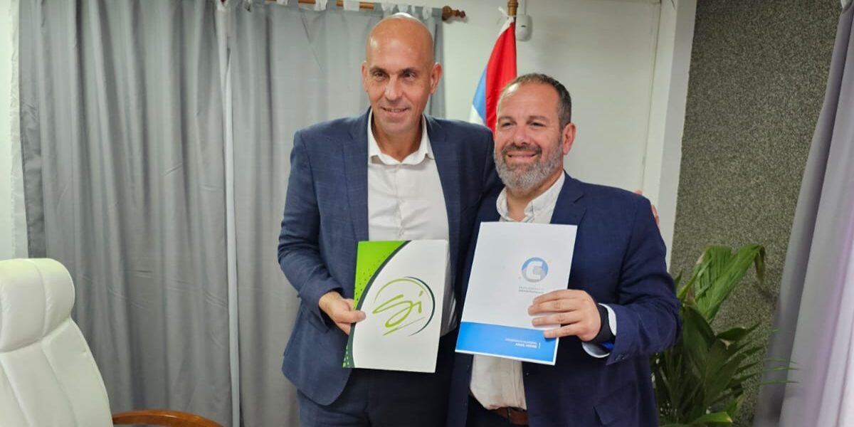 El intendente Ariel Weiss y el presidente de Sidecreer, Germán Mizawak, firmaron un convenio que permitirá sumar más servicios a los vecinos de la localidad.