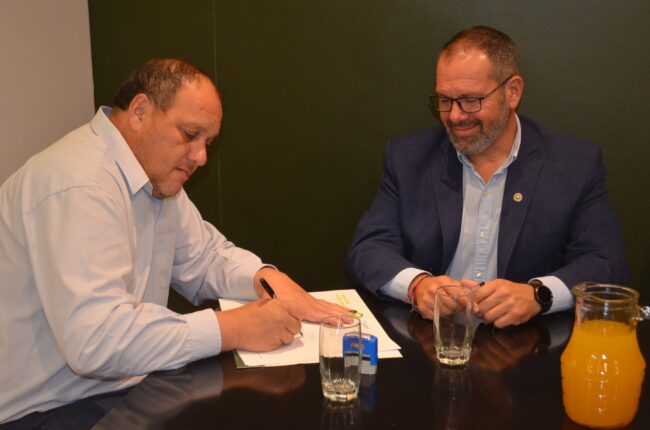 El presidente de Sidecreer, Germán Mizawak, entregó al intendente de Piedras Blancas, Gino Mesquida, su tarjeta Sidecreer.Recientemente, la empresa firmó un convenio con el municipio para que las empleadas y los empleados puedan incorporarse como socias/os y disfrutar de los beneficios de nuestro medio de pago.