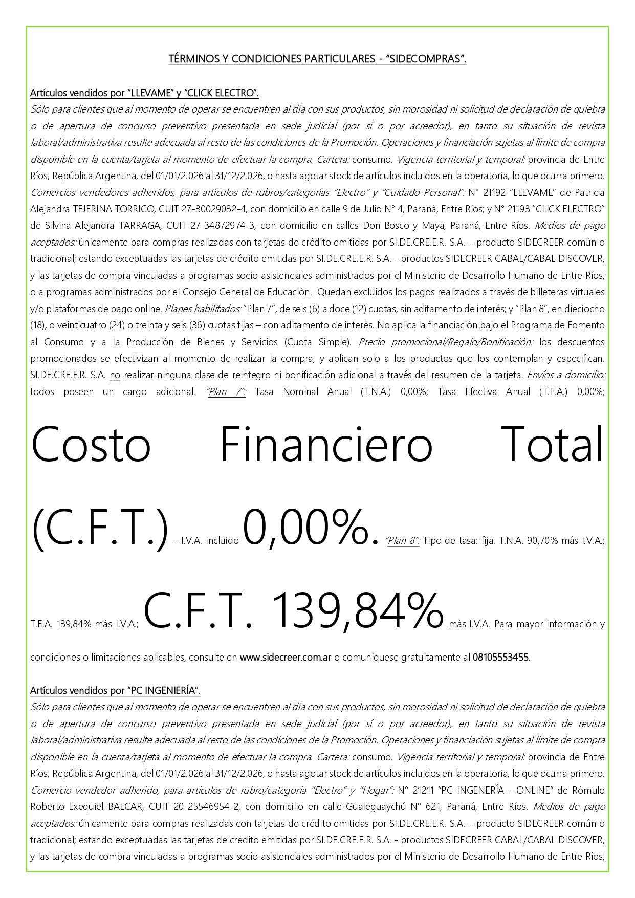 TÉRMINOS Y CONDICIONES PARTICULARES – “SIDECOMPRAS”.